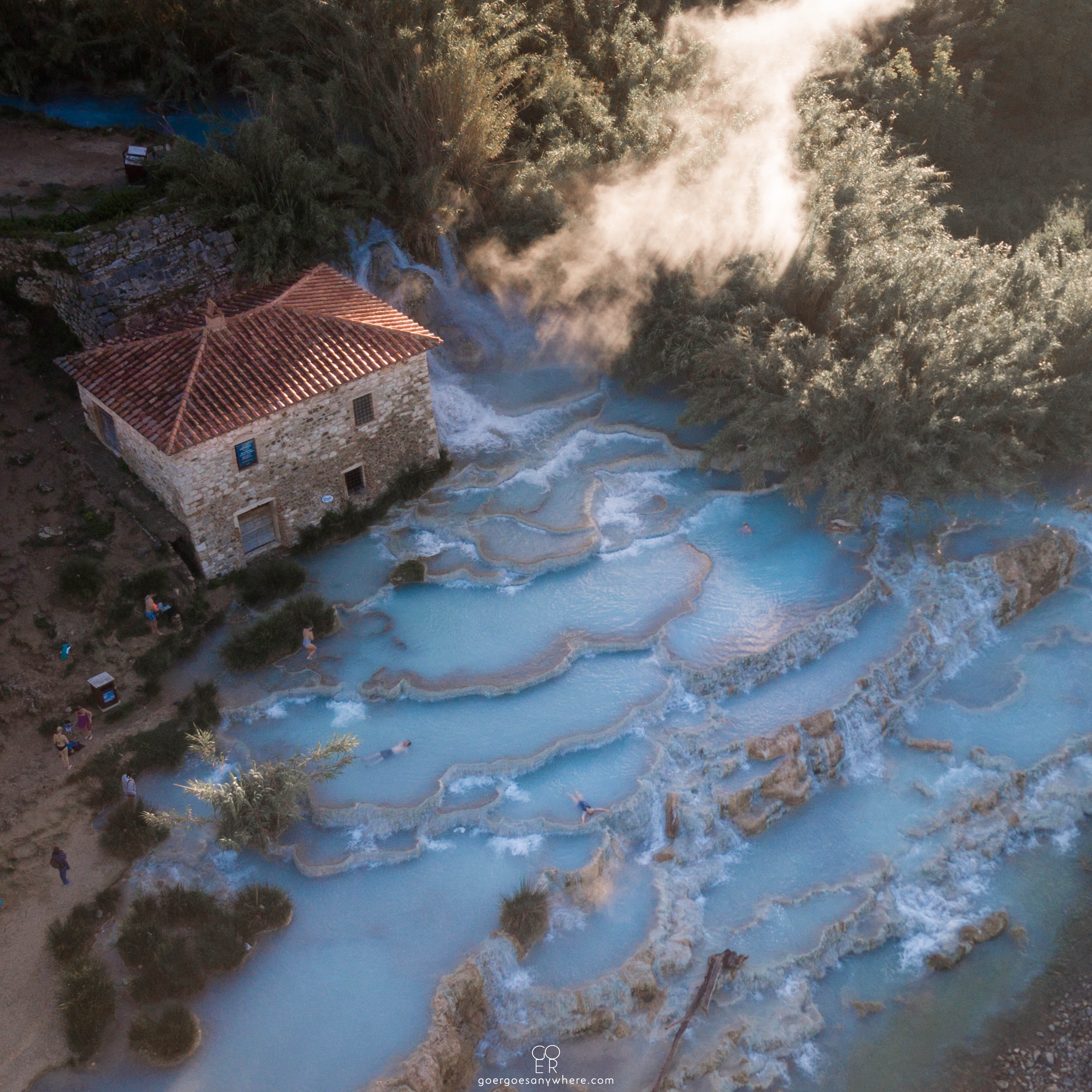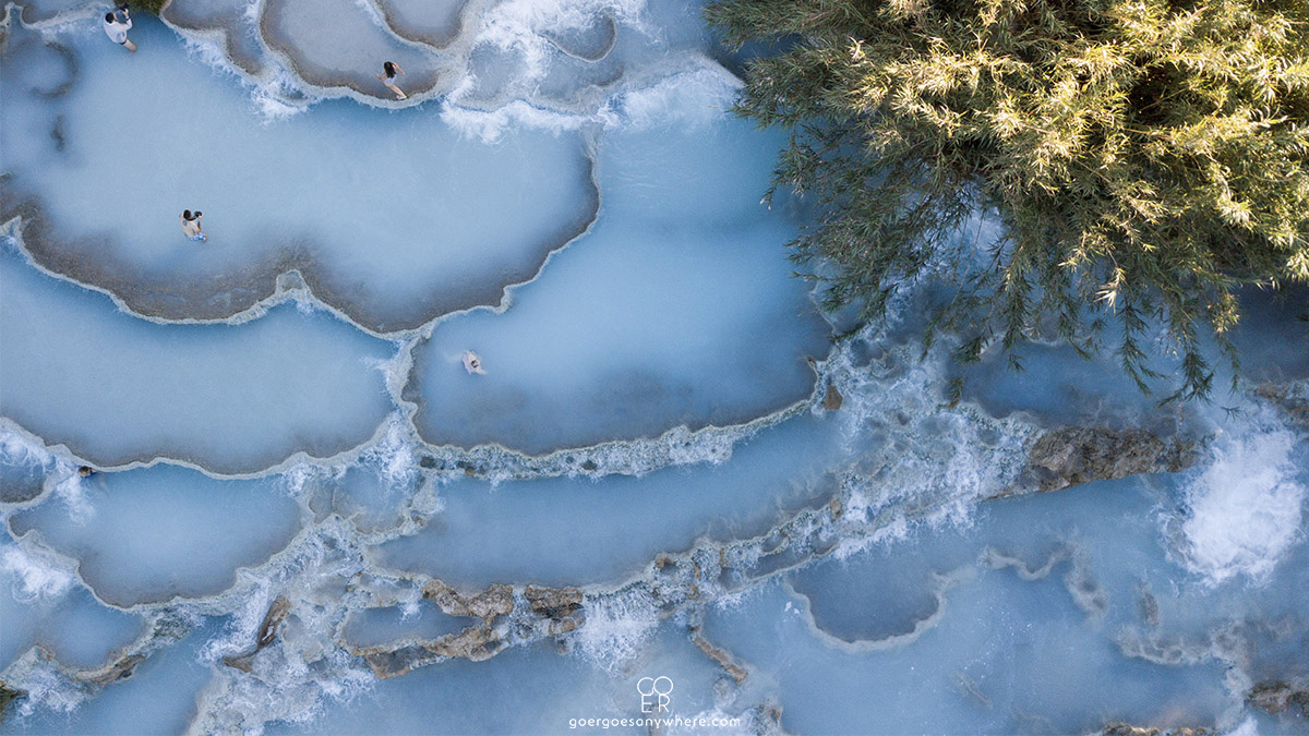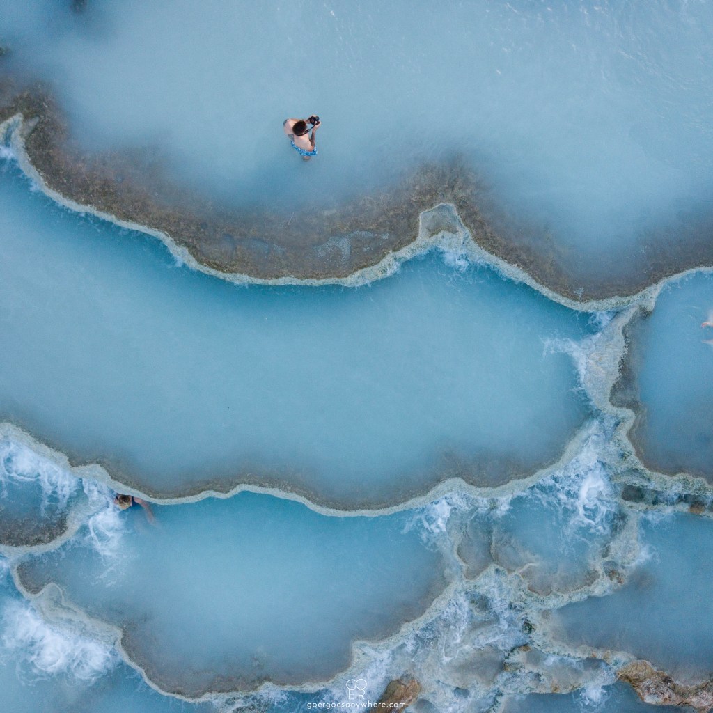 ย้อนกลับไปไม่กี่เดือนก่อน เราเห็นรูปภาพของน้ำสีฟ้าอยู่ในบ่อที่ลดหลั่นกันลงมาเป็นชั้นๆ (จากหน้า explore ใน IG) เหนือน้ำมีควันลอยขึ้นมาทำให้รู้ว่าเป็นบ่อน้ำพุร้อน โดยที่มีสีเขียวจากต้นไม้รอบๆ บ่อมาตัดกับสีฟ้าของน้ำ เห็นแค่รูปก็คือชะงักงัน ตัวสั่นเทา เอานิ้วจิ้มจอถี่ๆ แล้วกรี้ดในใจแบบ “กูจะไปปปปปป” (ตอนนั้นพูดไว้ก่อน ตังยังไม่มี 555) ผ่านไปไม่นานเหมือนสวรรค์เข้าข้างชั้นนนน กัยมีไปทำงานที่สวีเดนพอดี เราเลยรีบทำแพลน Road trip ที่อิตาลีทันทีเพื่อรอไปเที่ยวหลังกัยเสร็จงาน ซึ่ง… เอาจริงมันไม่ได้ใกล้กันเลย 555 เป็น route ที่ไม่สมเหตุสมผลมาก แต่ความกระหายไม่มีอะไรสามารถยั้งอยู่
